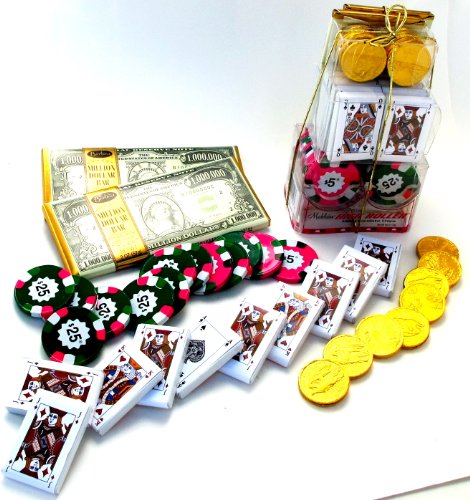 Gamblers' Gift Pack Assortment - Milk Chocolate Playing Cards, Chips, Gold Coins & Million Dollar Candy Bars Review