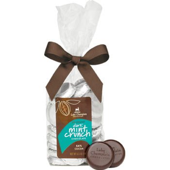Pure Belgian dark chocolate peppermint coins individually wrapped in embossed Italian foil. 54% cocoa content dark chocolate with peppermint. Convenient luxury in bite-size treats perfect for covert indulgences or serious snacking. Approximately 26 chocolate coins per bag. 6.5 oz. Kosher. All-natural.