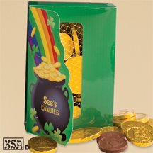 Strike it rich with See's tasty Milk Chocolate Gold Coins in a colorful St. Patrick's Day box.